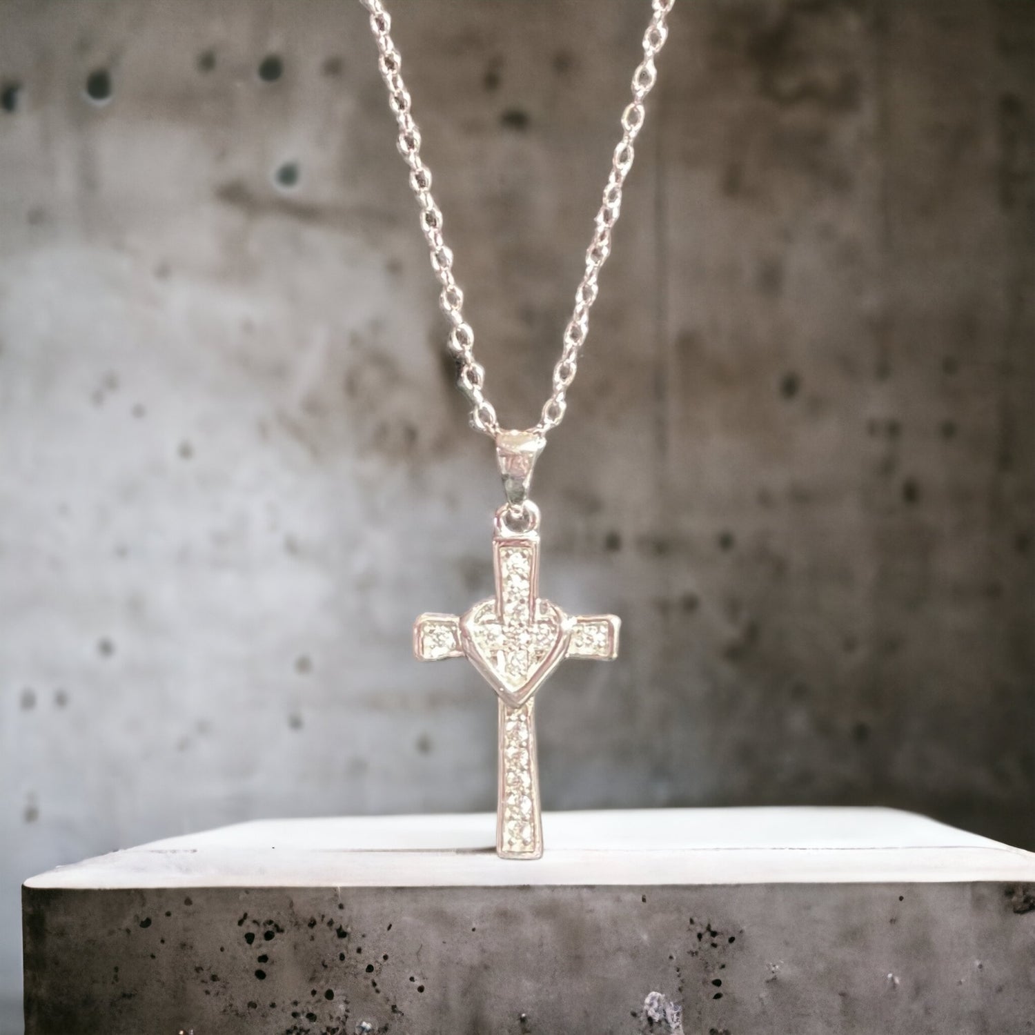 .925 Sterling Silver Clear CZ Small Cross Pendant-Rhodium Plated 16in w/2in extension