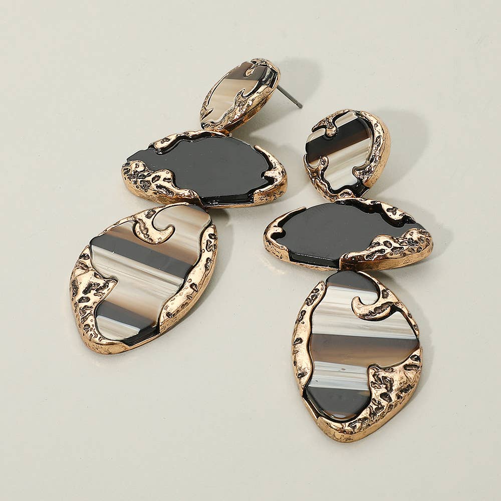 Make a bold style statement with these double drop earrings, featuring an abstract marbled look framed in a textured finish. Designed for elegance and versatility, they are perfect for enhancing both casual and formal ensembles.